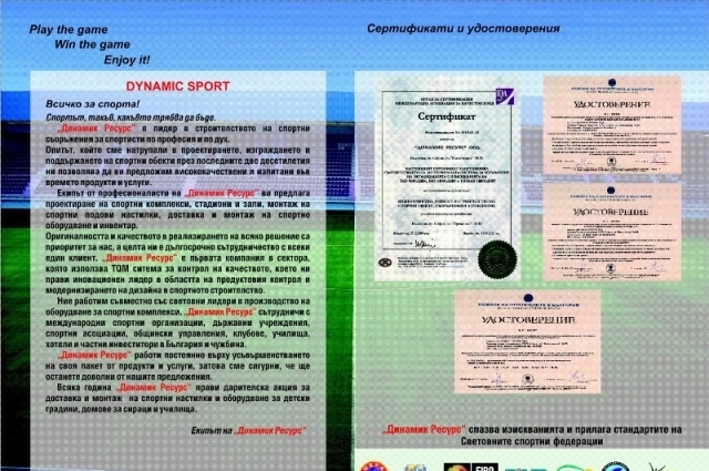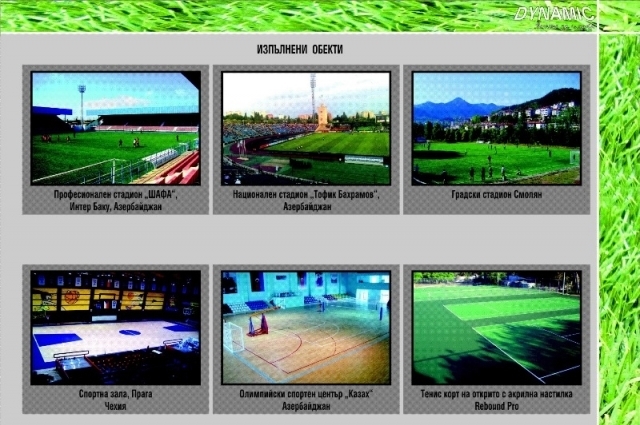 Партньорството ни с водещи световни и европейски фирми обуславя високото качество на спортните покрития, осветление и оборудване, които Ви доставяме.
