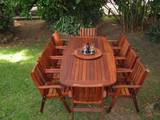 Градински мебели - маси, столове, комплекти за градината, шезлонги, чадъри и други аксесоари и градински мебели от луксозно тропическо дърво куила (мербо). Куила е дървен материал, който има изключително висока степен на издръжливост при излагане на външни условия. Дълго време от куила са се правили лодки, подови настилки, морски диги, подпори за минни галерии и др. Отскоро се използва за производство на градински мебели, защото твърдостта на дървото не позволява то да се обработва без специална техника. Като прибавим към тези характеристики на градинските мебели и висококачествени конструктивни елементи - неръждаема стомана и месингов обков, се получава завършен продукт, подходящ за постоянна външна употреба във вашата градина, ресторант, барбекю.