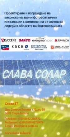 Фирма Слава & Солар ЕООД предлага на своите клиенти проектиране, изграждане и поддръжка на фотоволтаични системи. Ние ще изградим Вашето соларно съоръжение компетентно, бързо, качествено. Възползвайте се от дългогодишния ни опит в областта на електротехниката и машиностроенето.