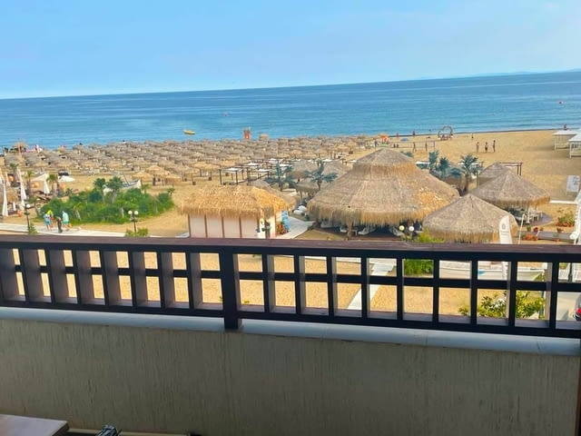 Нова, по-ниска цена от 10.07.2025г! Първа линия!!! Прекрасен обзаведен апартамент с две спални с панорамна гледка море в комплекс Арена 1 - Свети Влас. Трети етаж. Асансьор. Разпределение: входно антре, баня с тоалетна, всекидневна с кухня и тераса с гледка море, спалня с баня с тоалетна и тераса с гледка море, втора спалня с тераса с гледка парк. Такса поддръжка и охрана 1080 евро на година.