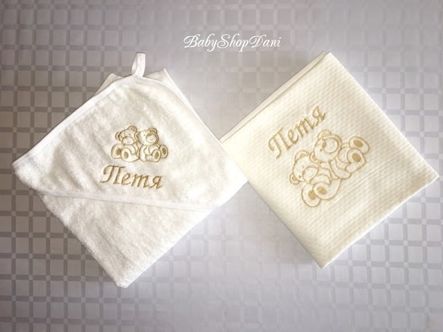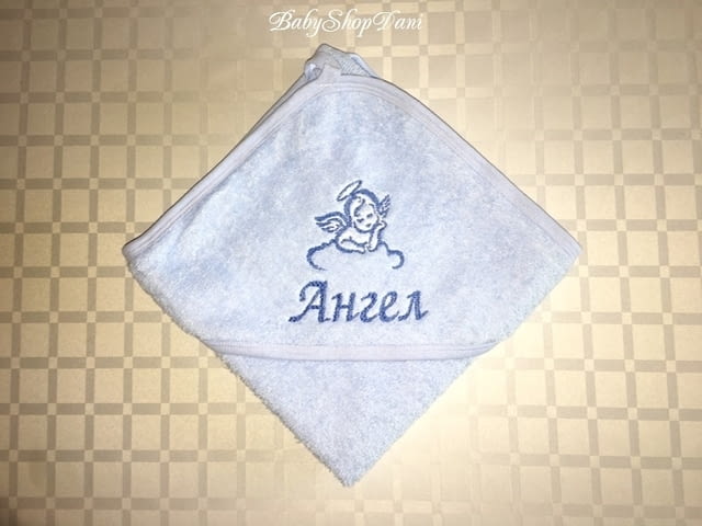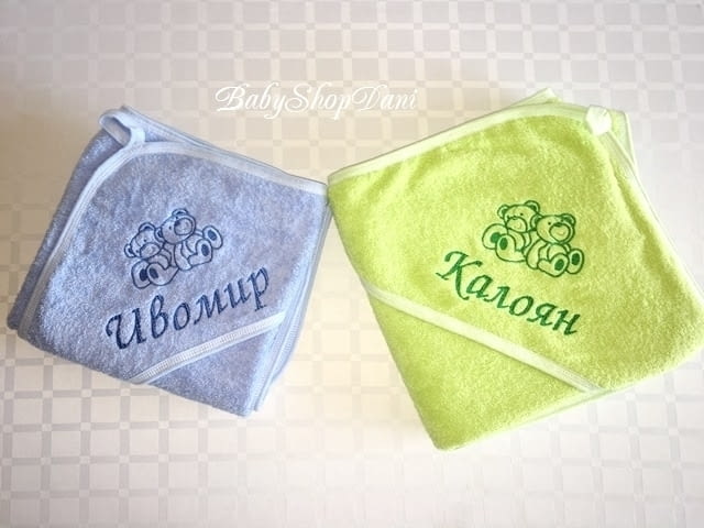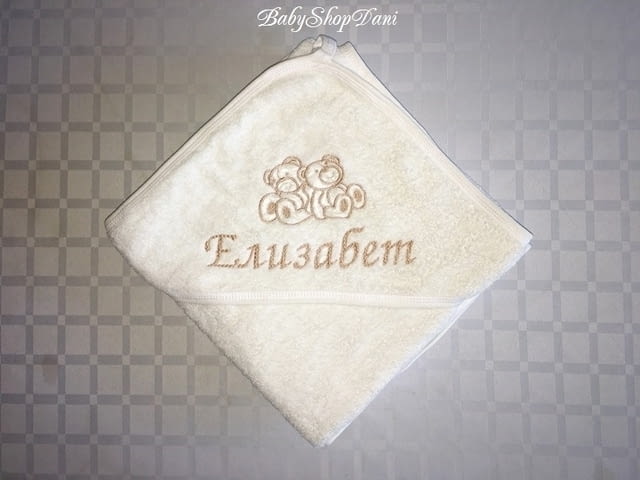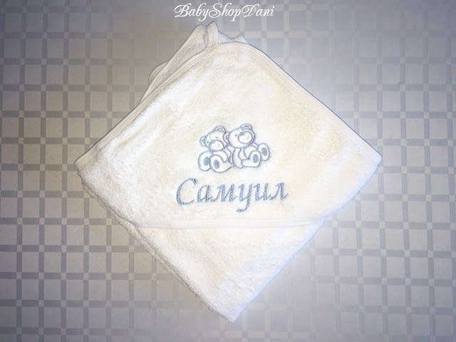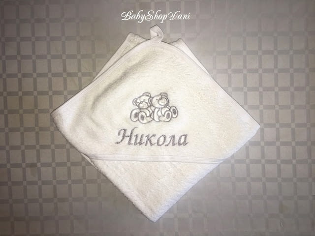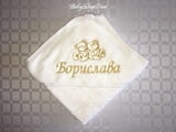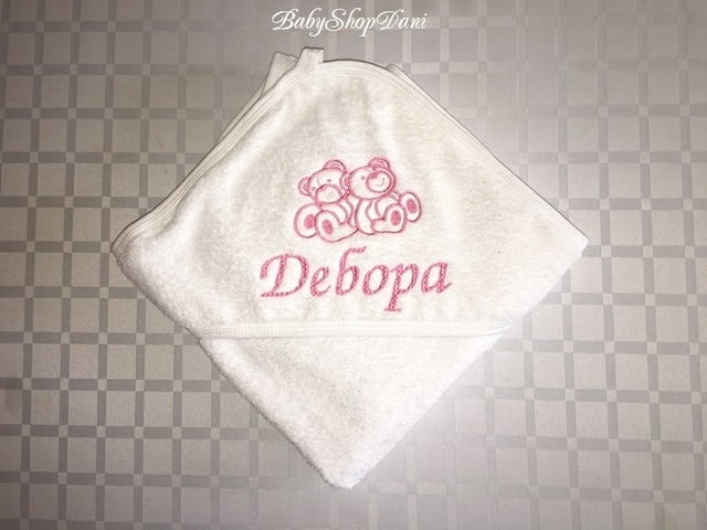 Бебешка ХАВЛИЯ за БЕБЕ с име надпис качулка персонализирана БРОДЕРИЯ