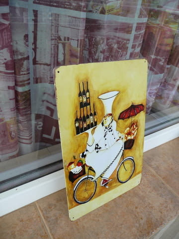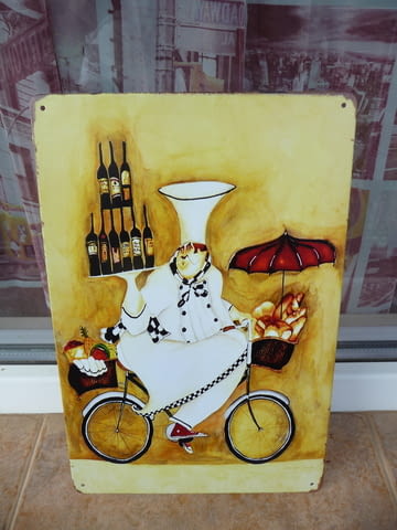 Ламаринена табела - Готвач на колело, подходящи за заведение, бар, колекция или за в къщи.