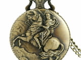 Джобен часовник.Наполеон Бонапарт на кон.Джобен часовник с локомотив.С верижка, може да се носи в джоб или като медальон на врата.Нов с кварцов мех...