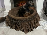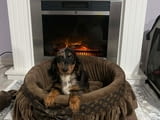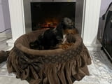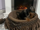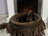 Дакел джудже с дълга козина, мерл, женски, на 9 седмици, обезпаразитен три пъти, с две ваксинации, отличен темперамент. Кученцето се предлага с чип, паспорт, клиничен преглед при ветеринарен лекар, първоначална опаковка гранули, родословие.