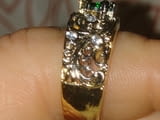 Ексклузивен моден филигранен двуцветен пръстен с изумруди и бели кристали, в покритие от жълто злато и сребро.