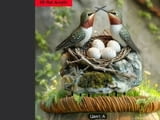 Пъстра реалистична декорация, изобразяваща птиче гнездо с две птици и яйца.