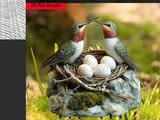 Моделът: 2D или плоска - Реалистична декорация с птици и яйца на скална основа, идеална за външна декорация, веранда, тревна площ, сакскоя, скален кът, ливада, перфектен подарък за рожден ден или дома, не се нуждае от електричество, външна декорация на стълбДизайн вдъхновен от природата, устойчив на външни условия художествен елемент, декорация на воден кът за птици.