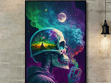 1 бр. цветен скелет Платно изкуство печат постер - Уникална тематична стенна декорация за вътрешни пространства - перфектна е за спалня, всекидневна, домашен офис, баня и ресторанти. Без рамка.