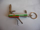 Има опция нож, права и кръстата отверка, отварачка за консерви и бутилки, тирбушон и верижка с халка за носене като ключодържател.