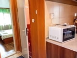Разполагате с : * Кухненски кът с хладилник, масичка с два стола, микровълнова печка , кана за гореща вода, чинии, чаши и прибори за хранене, * Климатик * Самостоятелен санитарен възел - баня с душ/WC * Двойно легло – спалня (160/200) * Спално бельо, хавлии и хигиенни консумативи * TV с кабелна телевизия * безплатен безжичен интернет (Wi-Fi)