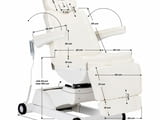 Електрическият стол Azzurro е оборудван с 4 задвижващи механизма, управлявани от жично дистанционно управление. Отличава се с възможността за лесно запазване на персонализирани настройки за позиция, благодарение на което можете бързо да се върнете към тях с един бутон. Характеризира се със стабилност, значителна възможност за индивидуализация и универсалност, така че ще работи в много специализирани кабинети