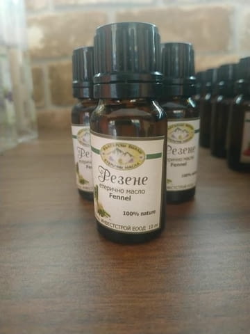 Фирмата ни произвежда във собствената си дестилерия в село Гълъбец, община Поморие масло от сладко и горчиво резене! Маслото от резене (Foeniculum vulgare) се получава чрез парна дестилация на семената, а отличителната му характеристика е съдържанието на tr-анетол и d-лимонен. Етеричните масла произведени от нас са 100% чисти с натурален произход, не са денатурирани или смесени с други масла.