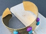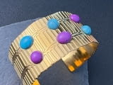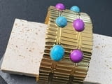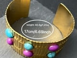 1 бр. Индийска дамска етническа регулируема метална златиста гривна с многоцветни акрил и синтетичен тюркоаз, чукана текстура - Голяма маншетна бижутерия за майка, съпруга, приятелка, сестра - Перфектен подарък за Коледа, ьеня на благодарността, феня на майката - Ежедневно носене и парти аксесоари, индийска бижутерия, за специални поводи, позлатен финиш, за тийнейджъри и д-р. Универсално предназначение.