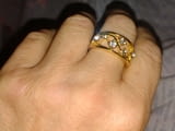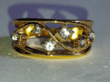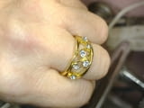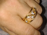 силно искрящ и сияен дамски пръстен позлатен в жълто злато 18 К и с 6 броя диаманти.