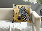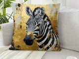 1 декоративна възглавница с тема зебра и златни акценти. Къса плюшена калъфка, едностранен печат, с цип.