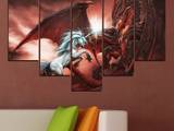 Картина пано за стена от 5 части - Еднорог срещу дракон - HD-275