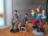 Клоуните са изработени от полирезин. Нямат маркировки!!! Цена за клоуна с торта - височина 26 см. цена 45 лева . Клоуна със стълбата - 45 лева. Клоуна на стол - 40 лева
