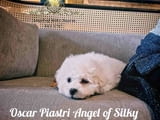 Продава се изключително малко мъжко кученце Бишон Фриз, Оскар Пиастри Ангел от Silky Storm, родено на 15 ноември 2024 г.