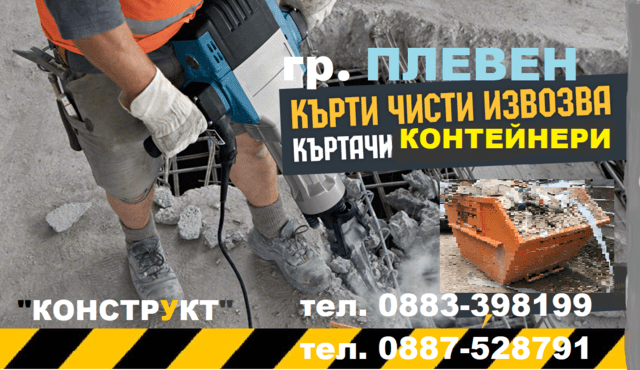 Фирма Къртене в Плевен „Конструкт“ (тел. 0883-398199 и 0887-528781) предлага: