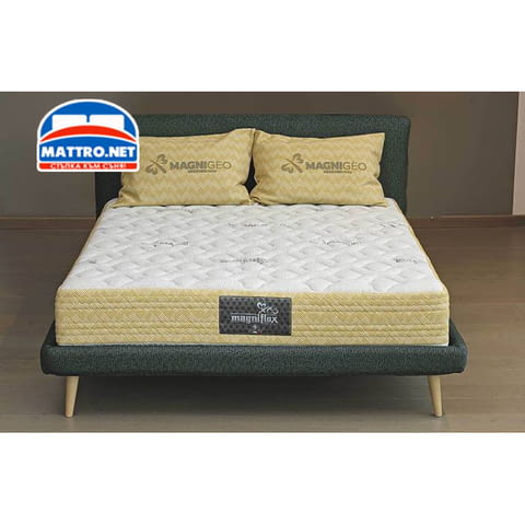 Двулицев матрак MagniGeo е част от колекцията на доказаните със своето високо качество - матраци Магнифлекс. Иновативен модел, изработен с екологични материали за по-добро бъдеще за всички на Земята. В основата си съдържа еластична пяна, която осигурява ортопедичност и отлична поддръжка на спящия за по-пълноценен и здравословен сън. Калъфът е с поставен цип за лесна поддръжка и почистване. В горната му част е поставена мемори пяна, притежаваща свойството да приема формите на тялото, облекчавайки натоварването в кръста, краката и раменете. Текстилът е изработен с 50% рециклирани материали, много приятен на допир. Височината на матрак MagniGeo е 25 см, степента на твърдост е средномека. Доверете се на предложението на Магнифлекс и се радвайте на по-пълноценен и зареждащ сън.