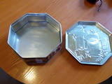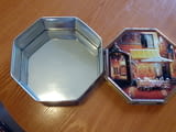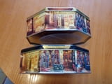 Продавам две метални кутии от бисквити и шоколад, кутиите са Произведени от Jacobsens Bakery Ltd Дания. и са с мотиви от картините на художника Виктор Швайко - европейски кафенета. Капака е осмоъгален с релеф кутиите са с размер 20 / 7 см. Цената на едната кутия е 25лв. Ако се купят двете заедно обща цена 40лв.