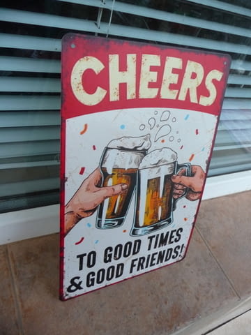 Метална ламаринена табела - Cheers - To good times & good friends!.