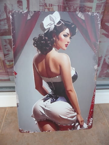 Метална табела еротика секси момиче камериерка кабаре готино брюнетка