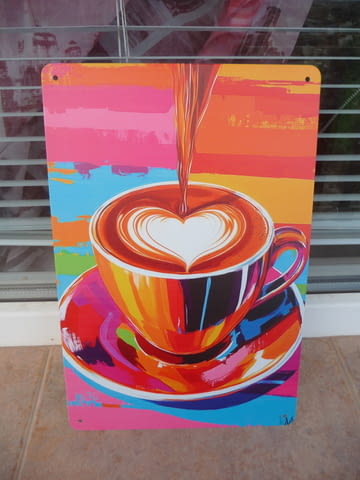 Метална табела кафе цветна шарена стрце настроение красива красота