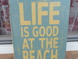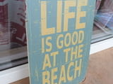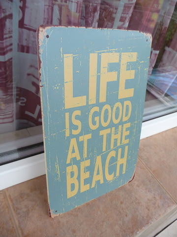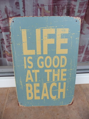 Метална ламаринена табела - Life is good at the beach. Синя.