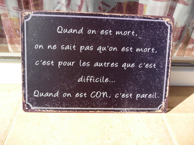 Метална табела надпис Когато сме мъртви и когато сме тъпи не знаем, че сме такива