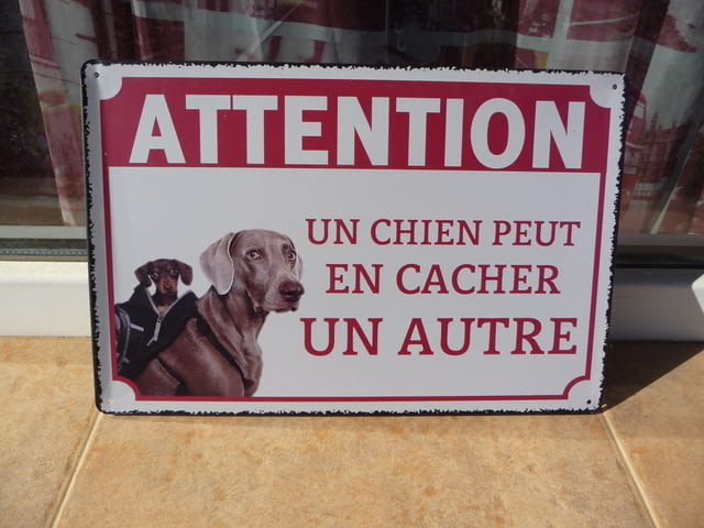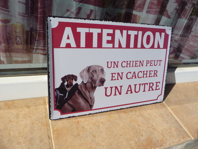 Метална ламаринена табела - Куче в раница.