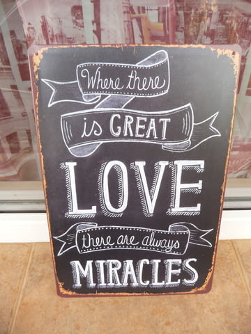 Метална табела надпис послание Голяма любов прави чудеса