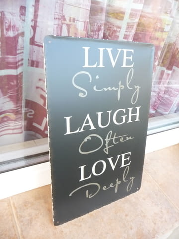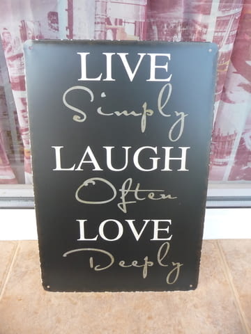 Метална ламаринена табела - Live simple, Laugh often, Love deeply.