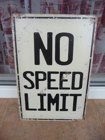 Метална табела надпис Скорост без ограничение 200км/ч лети No speed limit