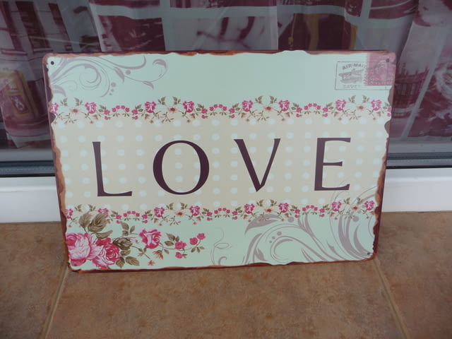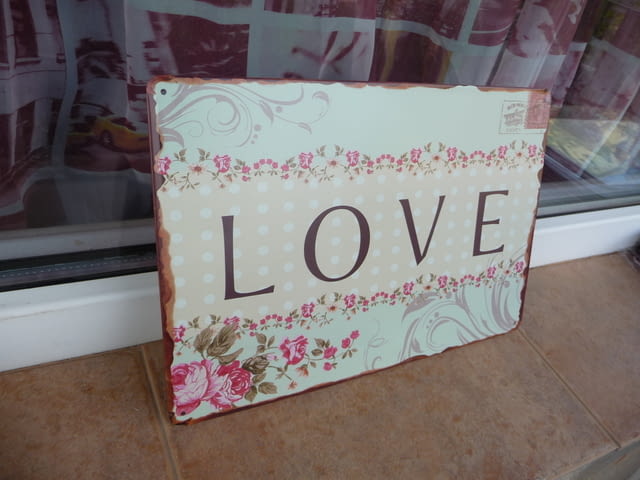 Метална табела послание надпис Любов Love цветя и рози влюбени