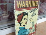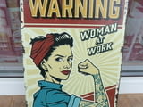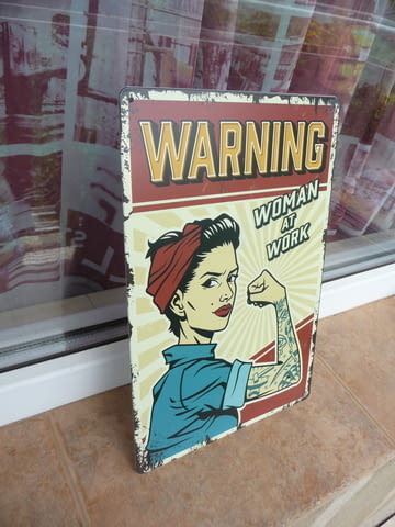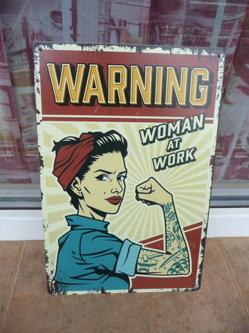 Метална табела разни Внимание жена работи мама татуировки юмрук