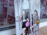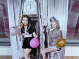Метална ламаринена табела - Момичета с балони пред стенен часовник.