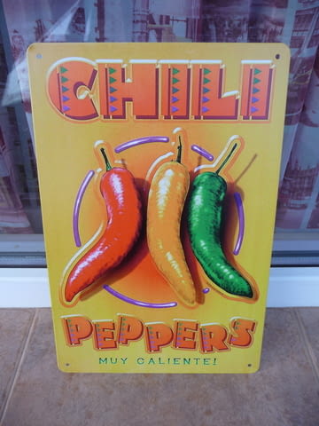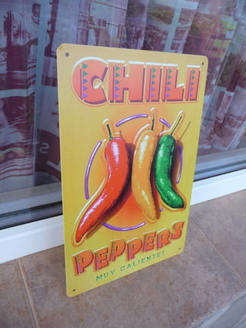Метална табела храна много люти чушки чущлета печени сурови семе