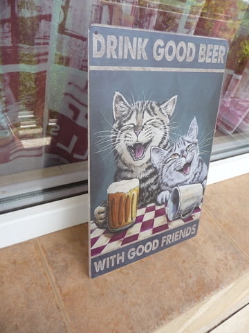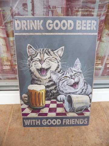 Метална табела хубава бира с добри приятели котки пияни весели котенца