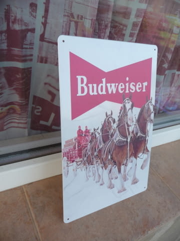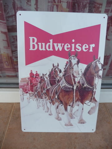 Метална табела Budweiser коне с каруца пълна с бира каси пиво