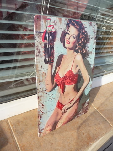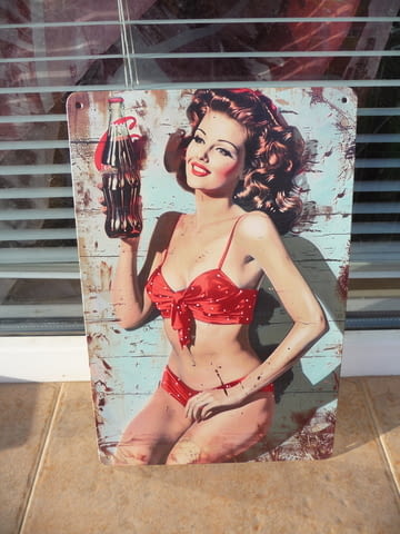 Метална табела Coca Cola момиче с червен бански червенокоса