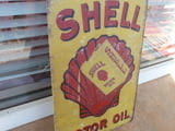 Метална табела Shell motor oil туба реклама бензиностанция пистолет масло бензин дизел гориво път
