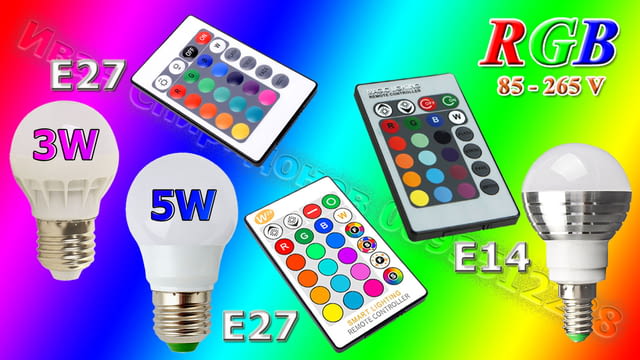 1. Многоцветна LED крушка с цокъл E14 или Е27
