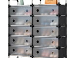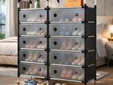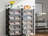 Модерен шкаф за обувки с 10 чекмеджета в сив и черен цвят. Идеален за съхранение и организиране на обувките ви. Изработен от здрави материали, лесен за сглобяване и поддръжка. Ще добави стил и функционалност към всяко помещение.