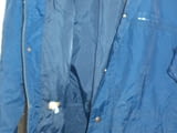 Ползвано ДАТСКО тънко, до средата на бедрото тъмно синьо яке, с подплата с мобилна качулка, размер М, от не промокаема материя, в отлично състояние.