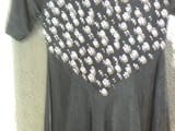 Снимки 9, 10 и 11 - НОВА българска официална рокля за дете от 10 до 15 г от копринен рипс с къс ръкав и обло деколте, с платка на бели цветчета и разкроена пола.Размер 34 - 36. Производител модна къща от Асеновград, цена 8 лв