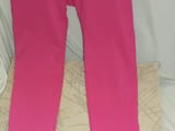 Снимки 3 и 4 - розов дълъг трикотажен клин със фигури на прасеца от задната страна, ръст 140 - 160 см .