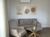 Апартаментът е чисто нов, необитаван, изпълнен в модерен стил с внимание към всеки детайл. Интериорът е решен в топли неутрални тонове, съчетани с модерни акценти и функционално разпределение, което създава усещане за комфорт и простор.
