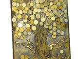 Ръчно изработена композиция - сувенир декорация за стена изобразяваща дърво с корона от пари. Нестандартно и свежо решение за интериора във Вашия ...
