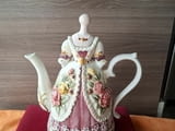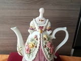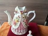 Оригинален порцеланов чайник. Височина 26 см. широчина в тясната част 10 см. в широката 16 см. С вместимост 1200 мл. Нов!